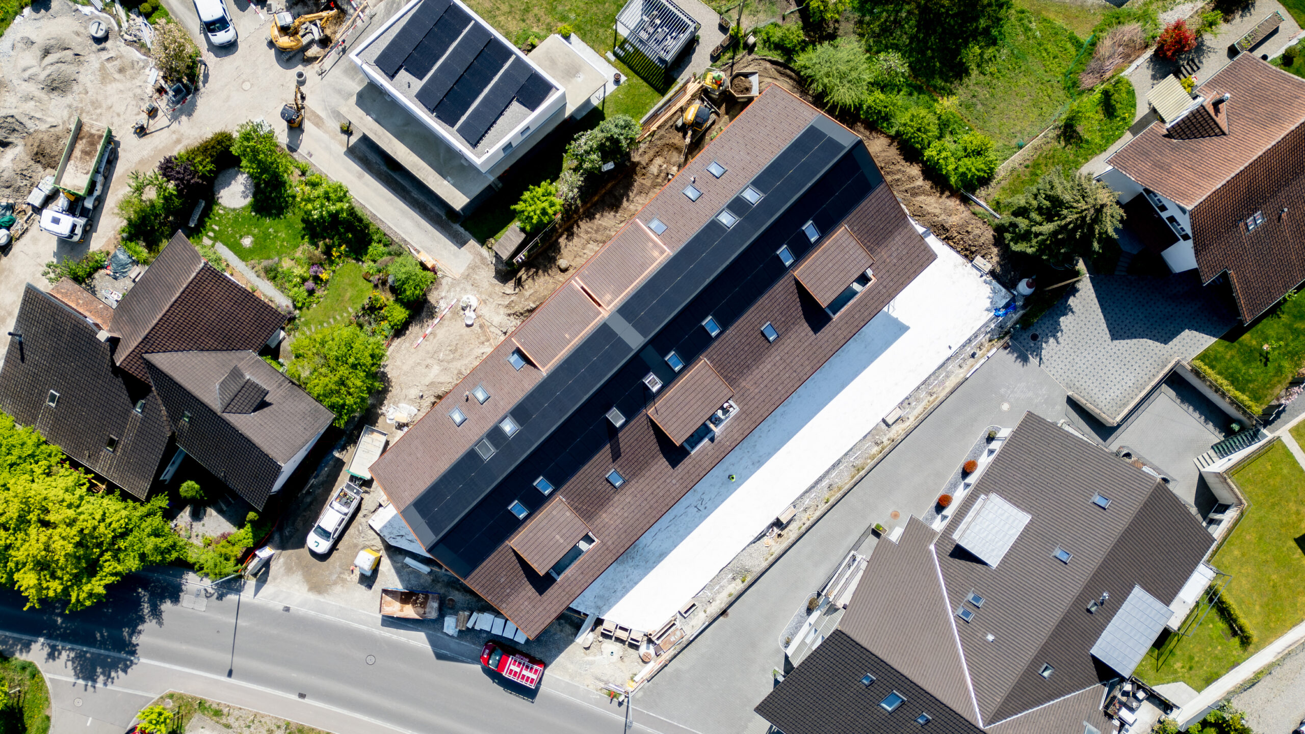 Dank modernster Gebäudetechnik mit Luft-Wasser-Wärmepumpe, Photovoltaikanlage und E-Ladestationen profitieren Sie von tiefen Betriebskosten. Das schont Ihr Budget und die Umwelt.